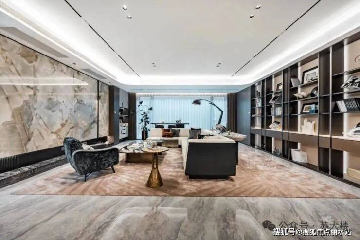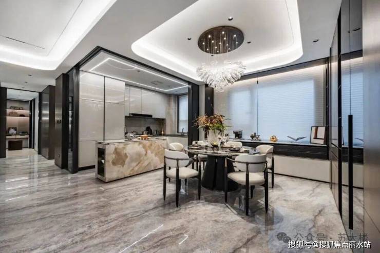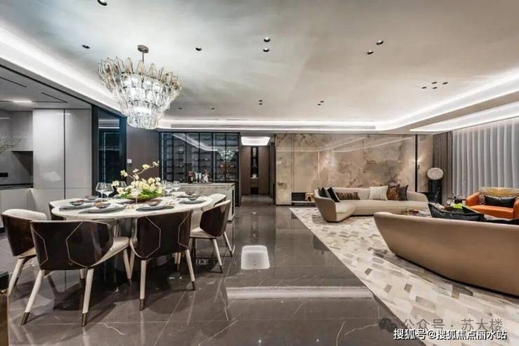 LDKB一体化超大宽厅,简一地砖通铺,顶部弧形吊顶,岩板背景墙交付,