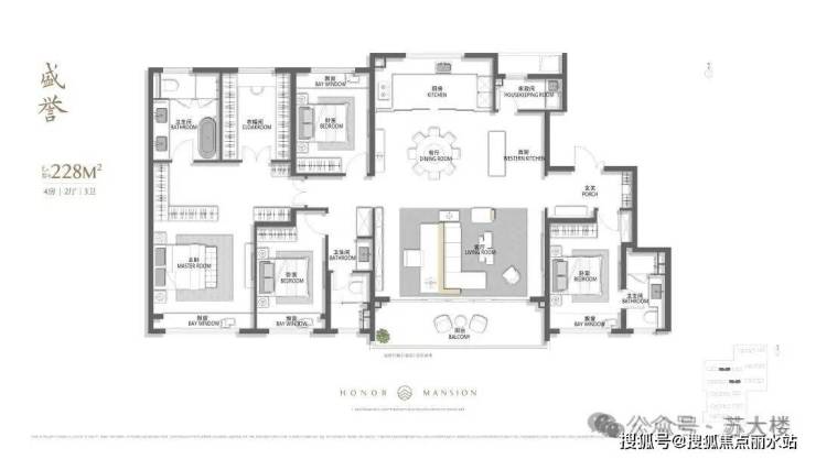 建面约228㎡洋房南向总面宽约21米,约7.1米阳台,做到双套房、双衣帽间、双玄关、主卧双开门、中西双厨五双户型,且双套房布局做到全明三卫。