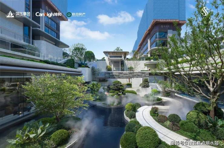 进入小区,直面中轴的下沉式庭院,融合瀑布、水景、植被与观景平台,立体化景观空间,定睛一看,豪宅气质扑面而来!