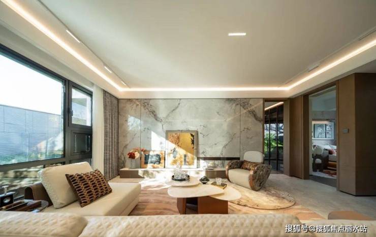 客厅背景墙采用岩板+金属造型,抗刮磨耐高温,寿命远超乳胶漆和木饰面,总价更是瓷砖背景墙的5-8倍!