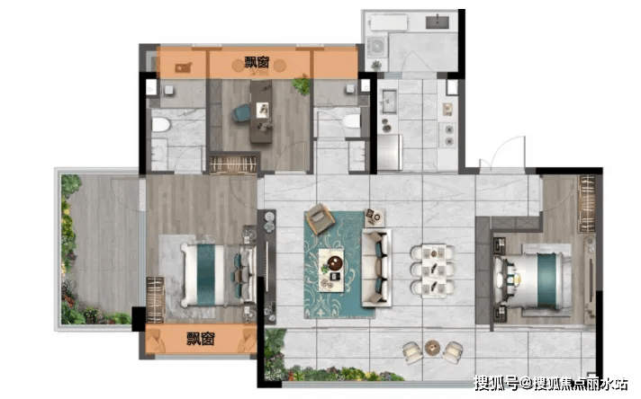 全屋约80cm进深飘窗、约10㎡专属露台、设备平台,满满“赠送大礼包”,硬是将使用率拉升至近100%,直接媲美大平层的空间享受!