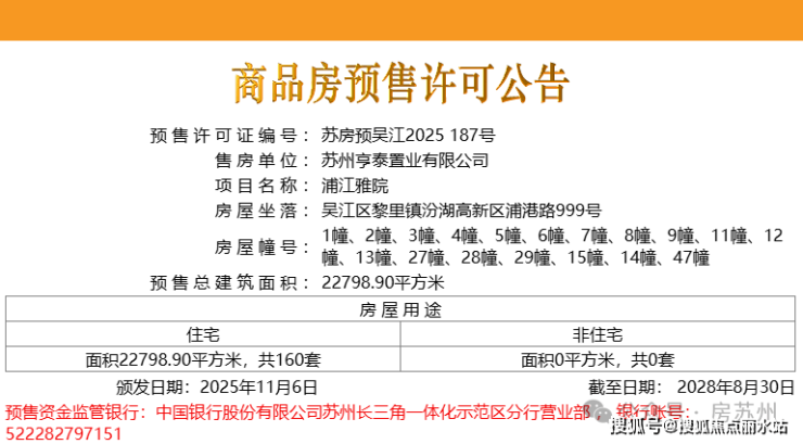 2025年11月7日,项目第三批房源领证,共160套,位于1幢、2幢、3幢、4幢、5幢、6幢、7幢、8幢、9幢、11幢、12幢、13幢、27幢、28幢、29幢、15幢、14幢、47幢,货值6.26亿。