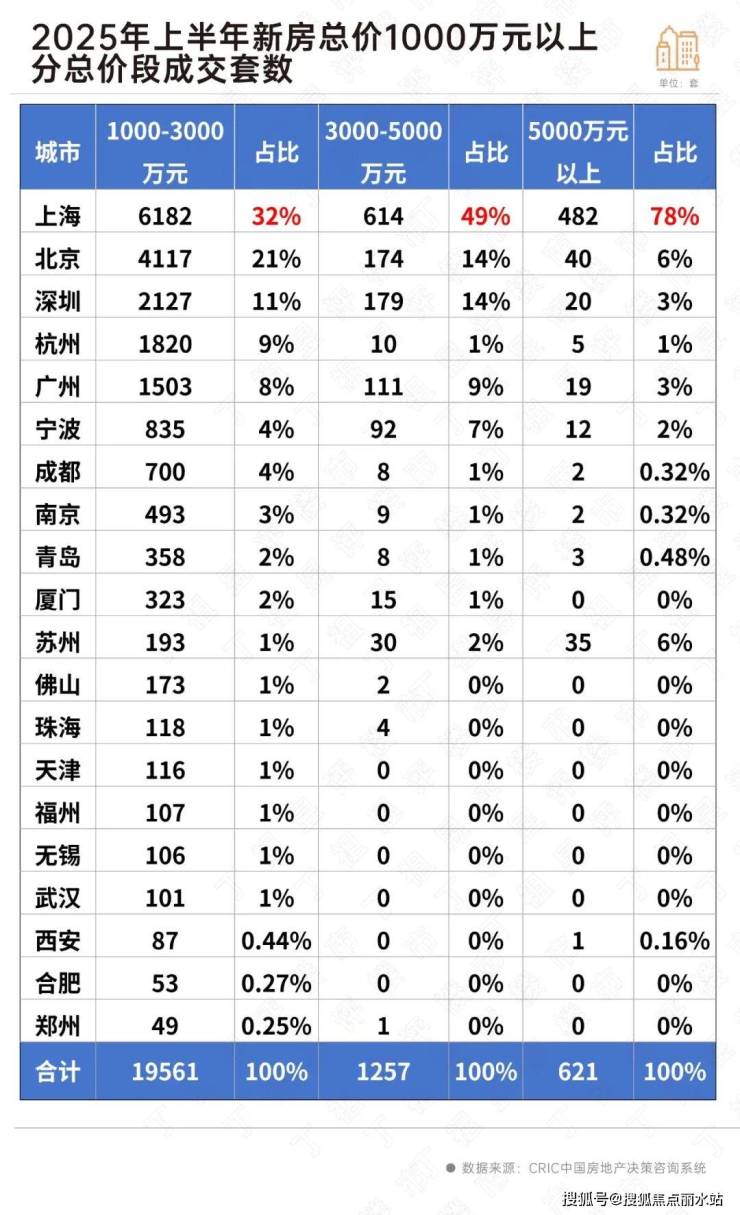 具体数据来看,重点20个核心城市上半年总价1000万元以上商品住宅合计成交2.1万套,同比增长21%,显著高于百城新房同期5%的增幅。