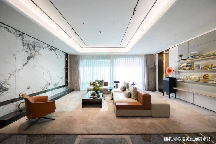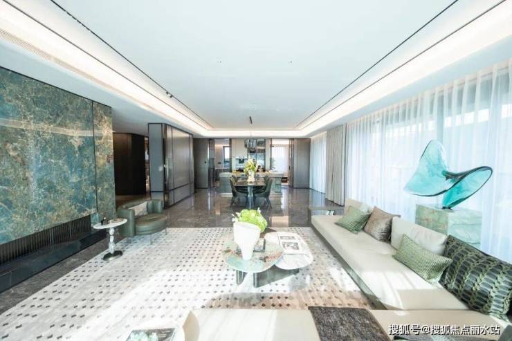 其次,从246平户型的客厅空间看,L型边厅+落地窗采光和景观极佳,客厅奢阔尺度下的尊崇和商务感,尽显高端人士的圈层生活和事业高度!