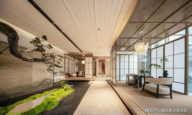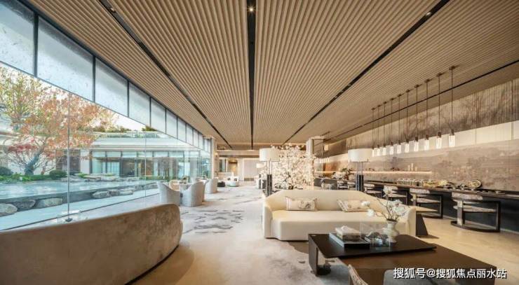穿过门厅,镜面般的静水被一道悬瀑打破,上城十号院将这座城市度假般的松弛感,凝练为一道名为“悬瀑吐瑞”的风景。