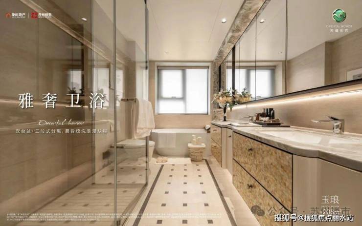 全龄段套房系统:“双套房+类套房”设计,尊重三代人生活习惯,避免干扰;主卧开间约4米,加上步入式衣帽间+梳妆台+双台盆+浴缸,成为一个独立的生活系统,豪宅主卧小家化。