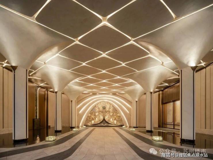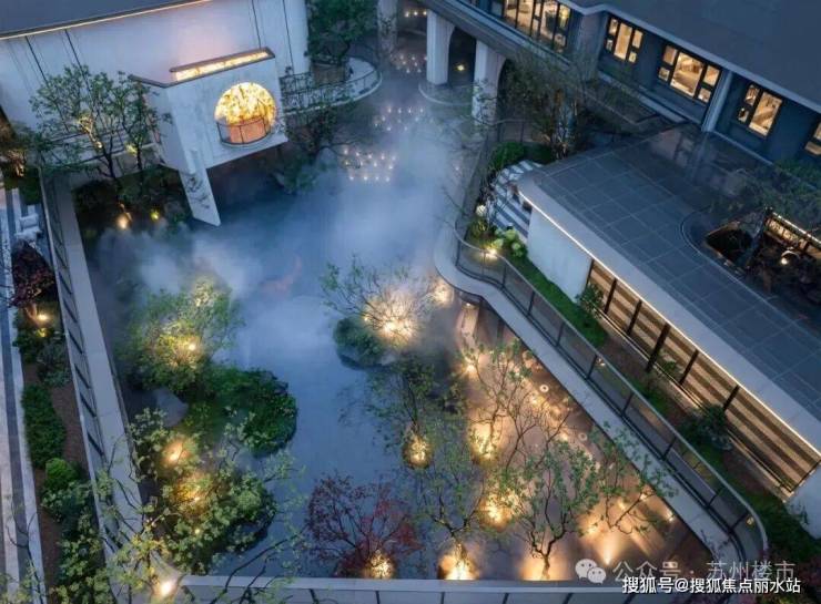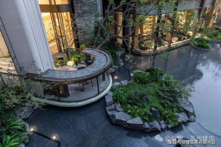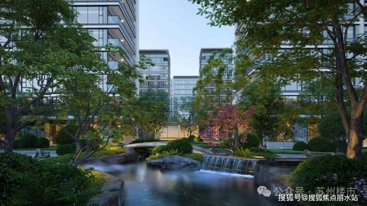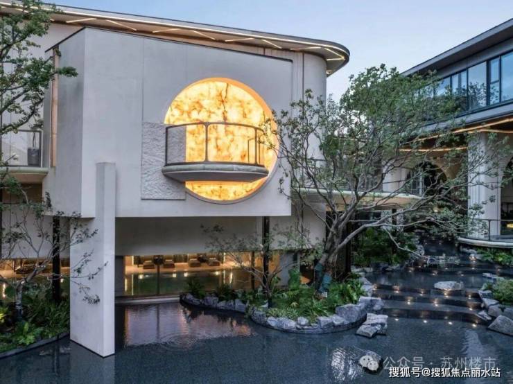 项目的园林设计下足了功夫,以"玉湖承韵"为理念,借鉴同心球技法,将姑苏山水融入现代社区,串联归家动线,呈现移步异景。