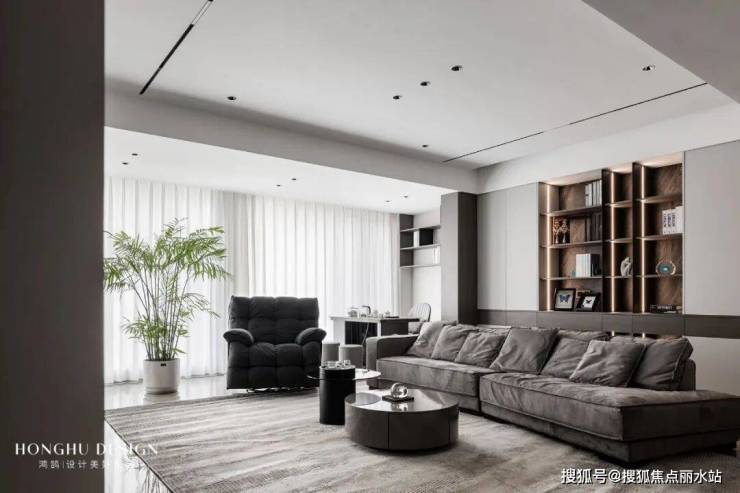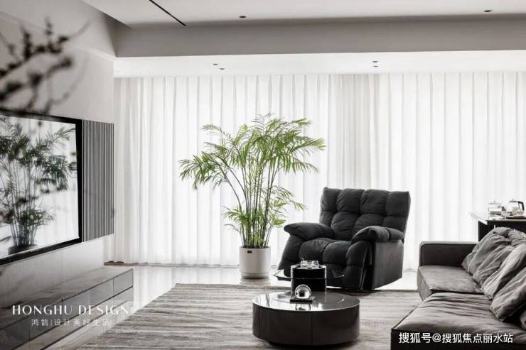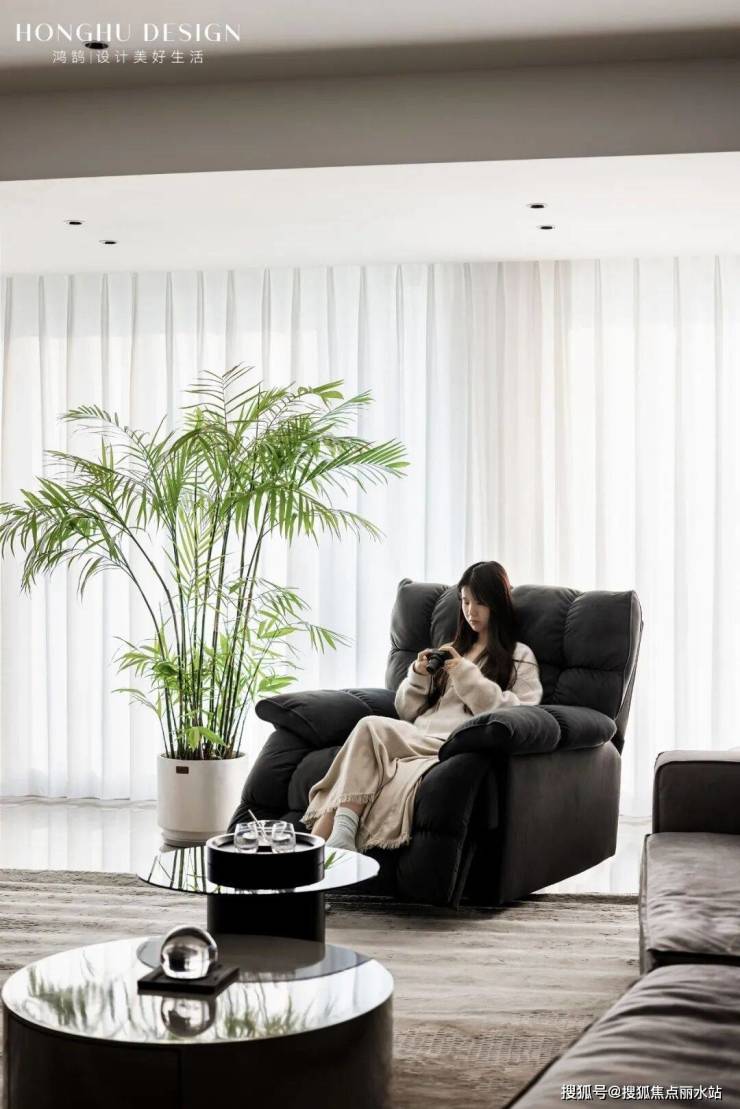 业主生活图景:周末午后,男主人于阳台茶席煮水沏茶,女主人窝在灰白布艺沙发翻阅杂志。玻璃隔断滤过的光影随时间游移,胡桃木地台成了猫主子的日光浴场——“开发商给的框架仍在,但家的灵魂已全然不同。”