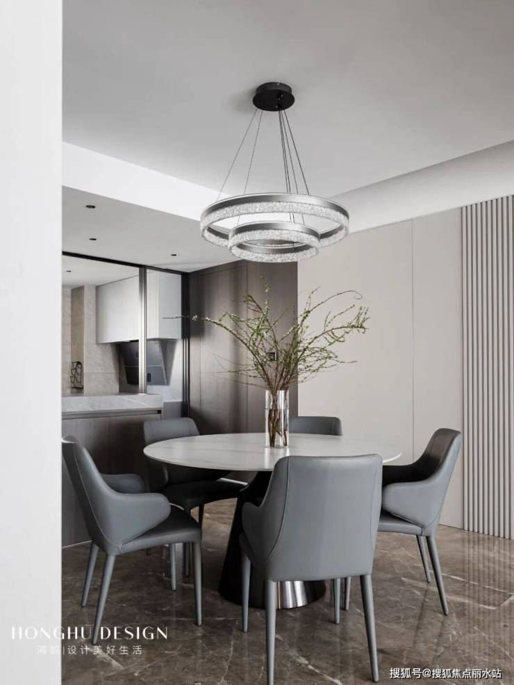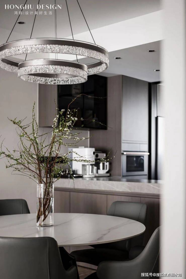 开发商预留的餐厅插座被巧妙移至柜内,台面只留艺术品与绿植;
