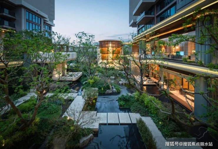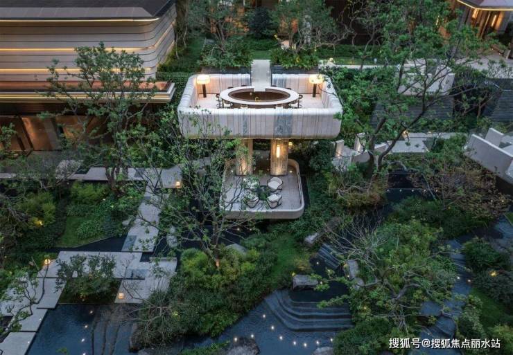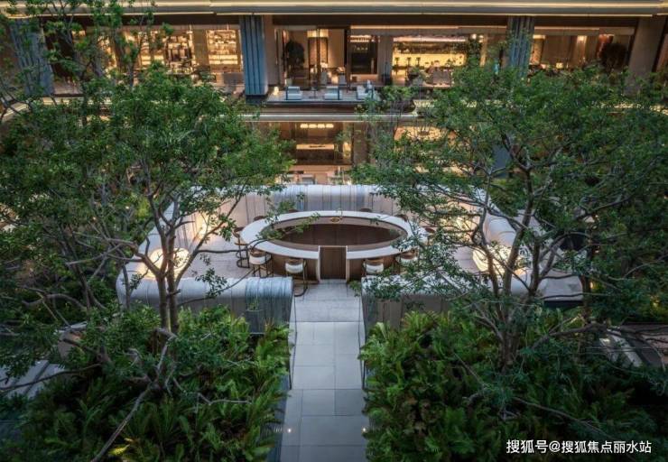 江宁金茂府的下沉庭院,植入了1000余株成熟乔木,其中更包含珍贵的生货乌桕与香樟。以林木勾勒山势起伏的肌理,将造景的艺术境界,再度推向新的高度。
