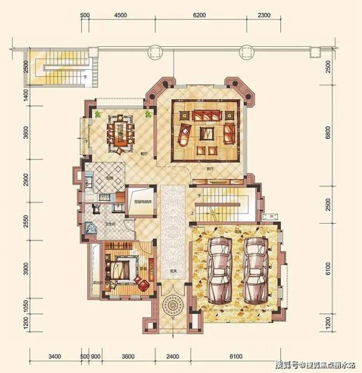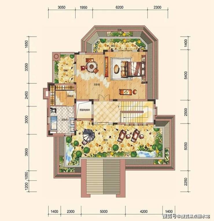 B户型,独栋别墅,6房3厅6卫,双首层阳光地下室,预留私家电梯位,照顾全家人的生活品质需求。