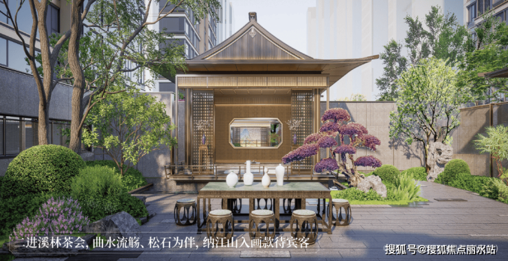 除了这些,包括观云具有宋氏风格的公建化立面、三进制归家礼序、下沉的山水庭院、国风园林、会所泳池健身房这些外化的豪宅卖点都是标配。并且,这是一个相对比较大的地块,园林体量是充足的,能够承接更有层次、更丰富的植被绿化和庭院小景,这一点其实非常重要,如果是小地块就会受到很大限制。