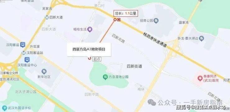方岛金茂观棠位于汉阳区四新大道与凤凰湖环路交汇处,属于汉阳四新板块的核心区域,与2.5环线杨泗港快速通道直线距离约1公里。