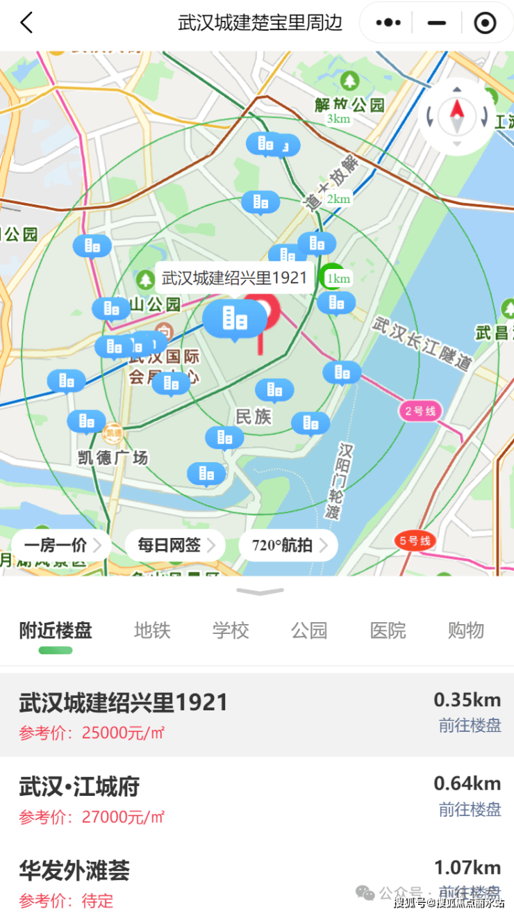 1公里范围内,happy站台、民众乐园、中心百货、M+购物中心,2公里范围内有越秀国金中心、恒隆广场、武商、武广等等购物中心遍布,商业氛围相当浓厚。