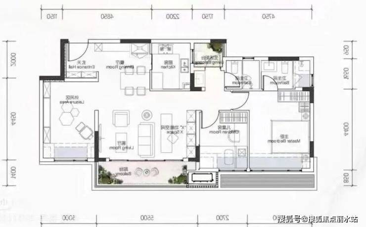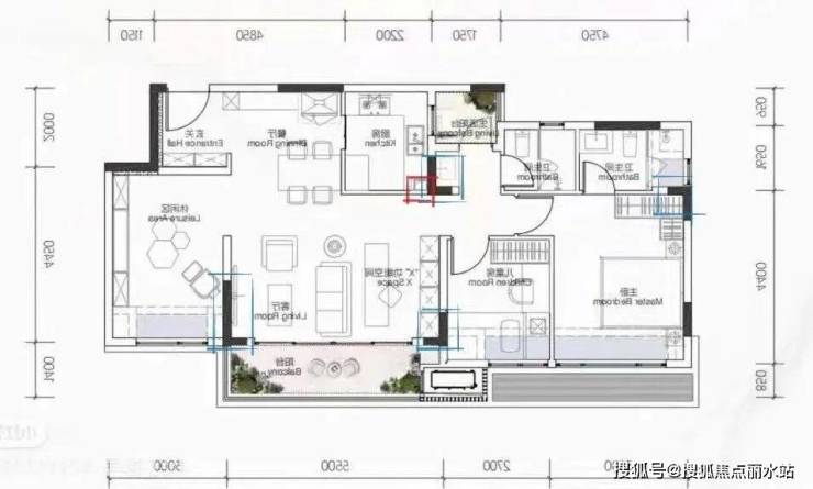 另外普及的知识,就是户型图上的尺寸。大部分开发商为了显得空间大,标注的方法会采用中轴线标注的方法,而中轴线呢是包含了墙体的厚度的,所以要做简单的加减法才能得到实际房屋尺寸再来考虑功能布局图。