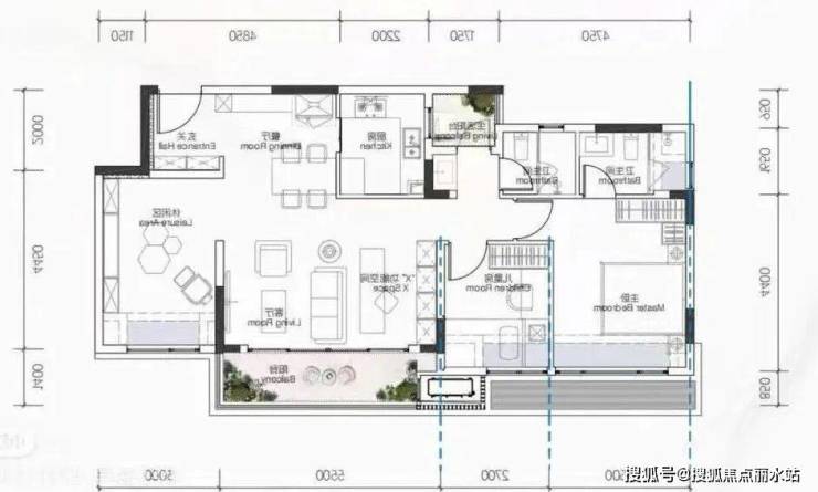 首先我们拿到户型图一般先看是几室几厅几卫。这个户型就是典型的三室两厅两卫。