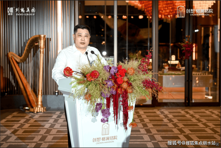 创想集团董事长金洪正先生为本次活动致辞。他表示:创想·樾澜铭院的诞生,不仅是空间的迭代,更是城市文化基因的一次生动转译。真正的豪宅,是能承载精神共鸣的容器。创想用建筑与艺术的交融,为常熟的城市精英,谱写出未来生活的理想乐章。