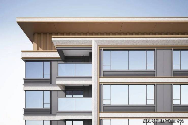 立面上提取“线面体”中的线和框造型元素,以线条为主、框为辅,通过形体划分,精致线条勾勒,色彩元素及有温度材料等搭配,整体立面呈现以现代形式为主,东方气质为辅的未来东方感。