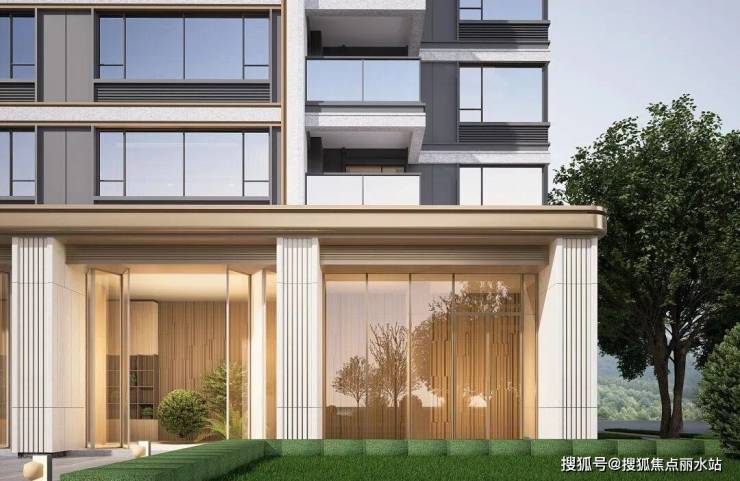 单元入口简洁、轻巧、通透,通过局部装饰元素和材质搭配,整体呈现:东方气质、礼序归家、景观相融,采用石材、铝板、高透玻璃等材料, “晓棠”元素也运用其中,打造归家近人精致尺度。