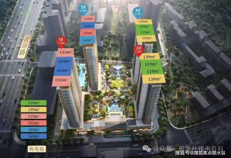 交通出行便利:家门口 100 米即达在建地铁 12 号线十五中站,步行 510 米到 4 号线梅苑小区站,870 米至 2/4 号线中南路换乘枢纽,三轨交汇,可实现武汉三镇无缝通达。