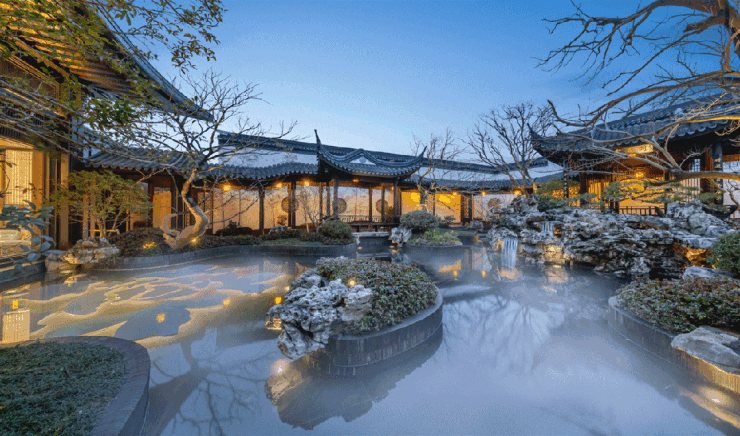 别人看风景,你却住在风景里,松弛感满分!建发观云府复现苏式园林的水墨意境,园中移步异景,业主归家时仿佛走进桃花源中。