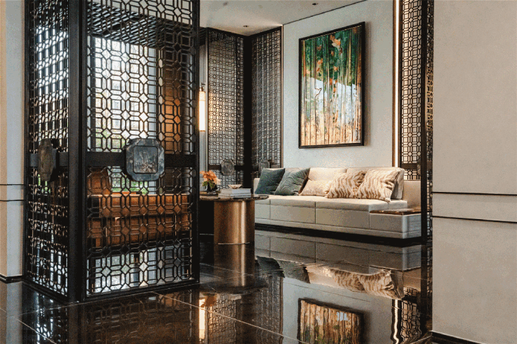 整体采用现代新中式设计,搭配高级建材与艺术灯光,氛围典雅。