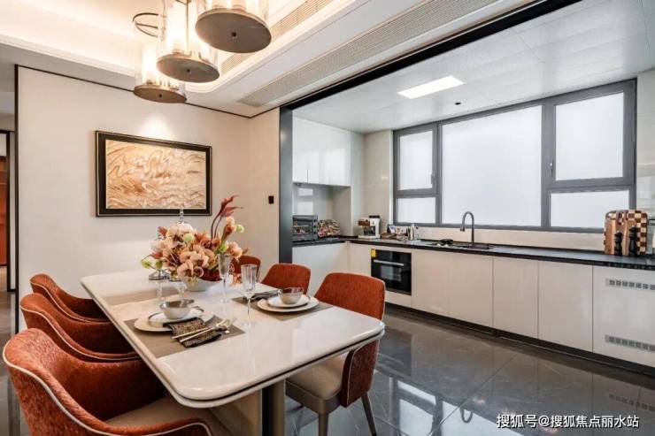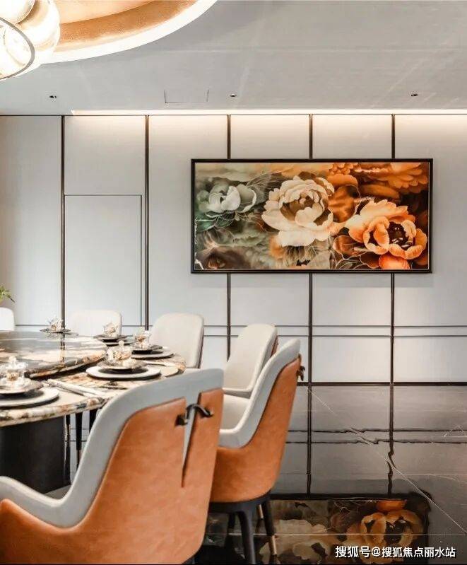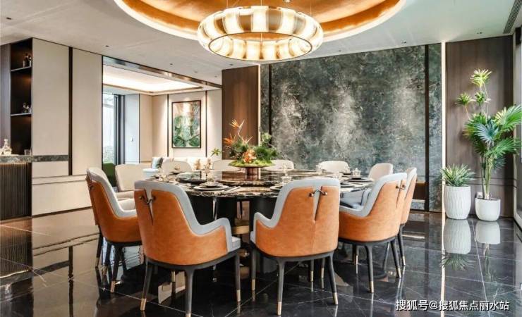 比如私宴会客厅,将餐厅、厨房、水吧、茶台等统统配齐,且餐厅背景墙采用的都是整面岩板,商务宴请时格调拉满!