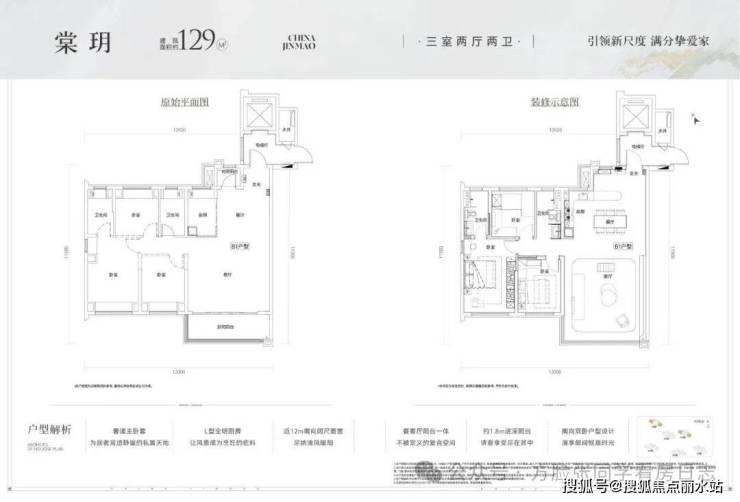 1、整体面宽多了0.3米,采光面更好,公共空间和主卧的尺度也略有提升