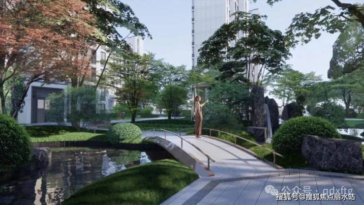 约1500㎡核心水景公园:于清澈如镜的池水旁打造沐水艺术馆,营造移步异景,流水潺潺,亭台错落,呈现出一幅如诗如画的园林景观。
