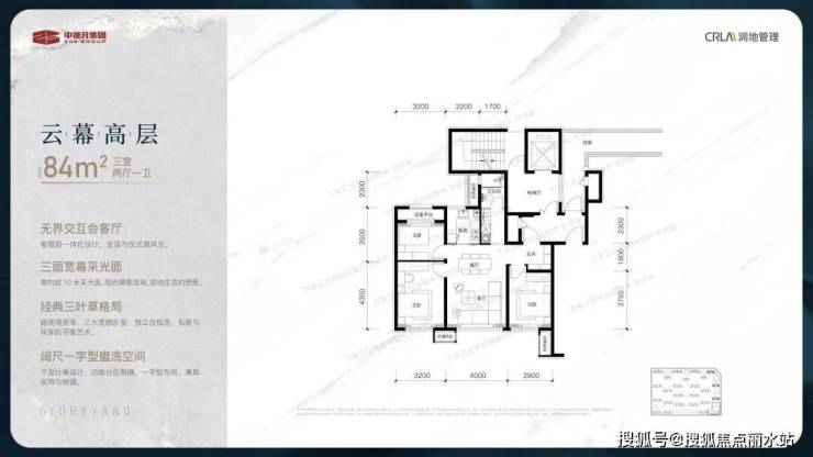 房子住得舒不舒心,还得看户内格局。润澜庭高层建筑面积在70-85㎡之间,洋房建面约90-140㎡,可以满足从首置到改善的多元居住需求。高层84㎡的三室两厅一卫产品,采用的是经典的“三叶草”式布局。南向三面宽幕采光面总面宽超过10米;三个卧室既相互呼应又相对独立;时下最流行的客餐厨一体化、干湿分离“一字型”盥洗空间等设计,让整个空间兼具颜值与内涵。