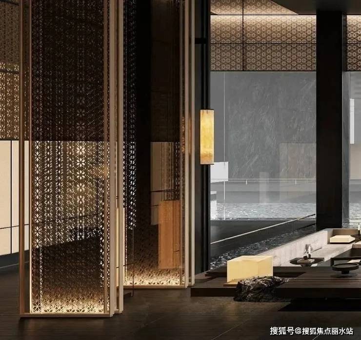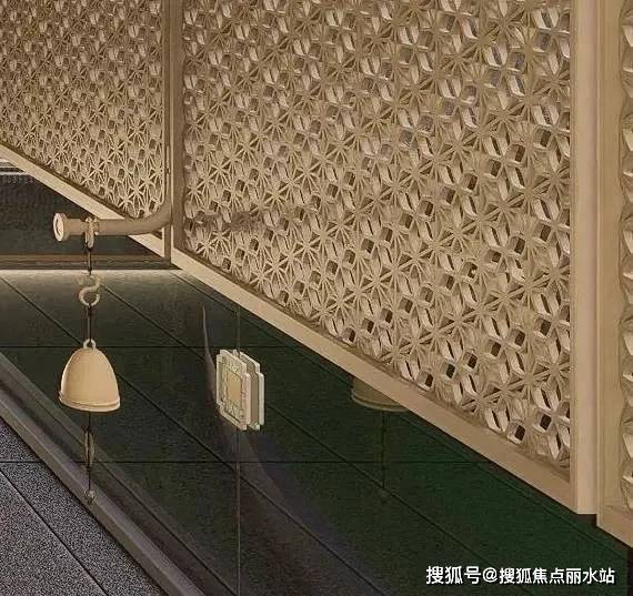 古梅符号融入屏风、格栅、风铎等装饰细节中
