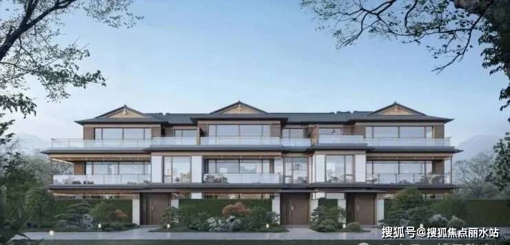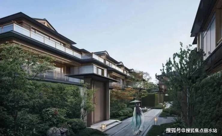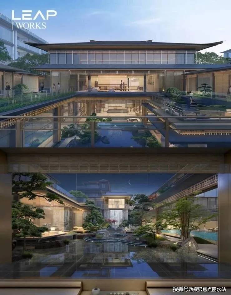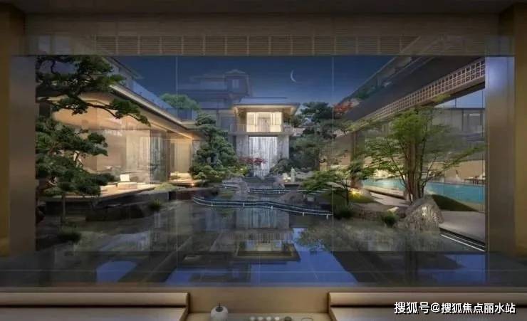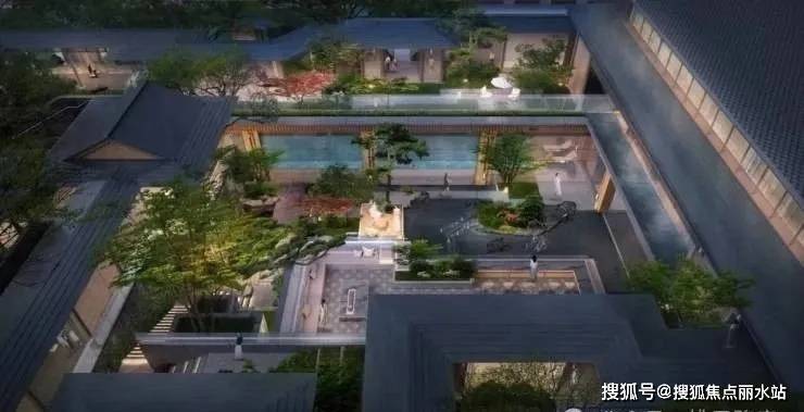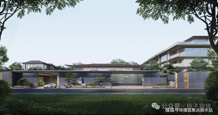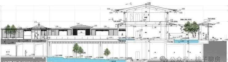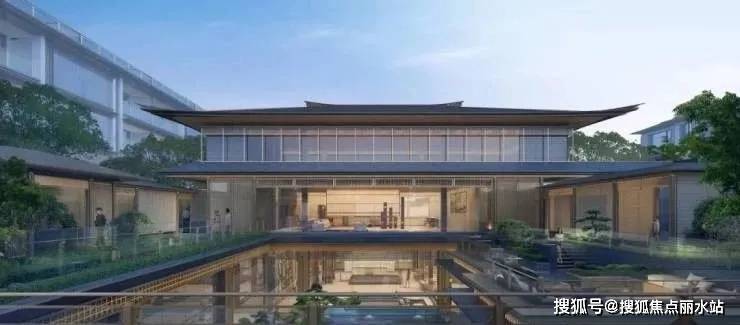 住宅立面设计延续了宋式建筑水平、简洁、飘逸的审美精髓,私人庭院内采用传统园林“堆山、叠石、理水”的造园手法,并以建筑、灌木、小桥和流水,构建起高、中、低三个层次的景致。