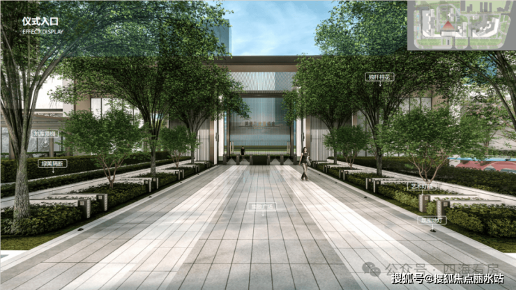 园林主轴:两侧桂花树恭迎业主归家,漫步在集散广场上,路旁的艺术灯箱及地灯照明回家的路途。