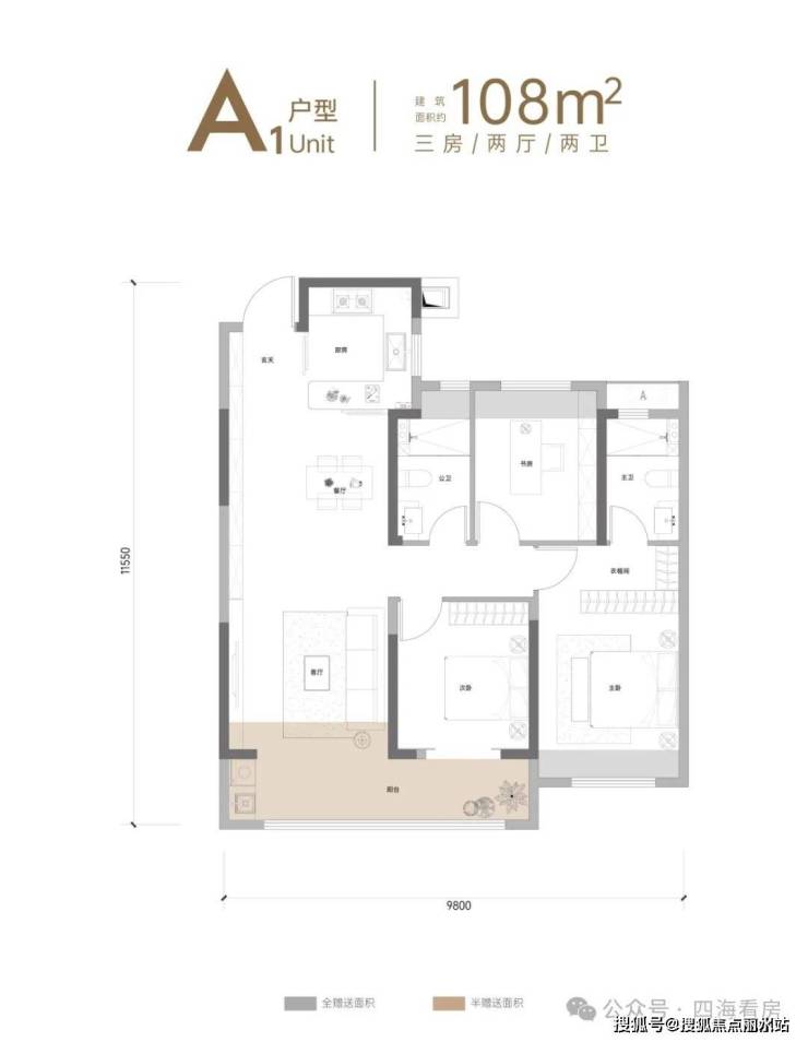 首开建面约108㎡3房2厅2卫