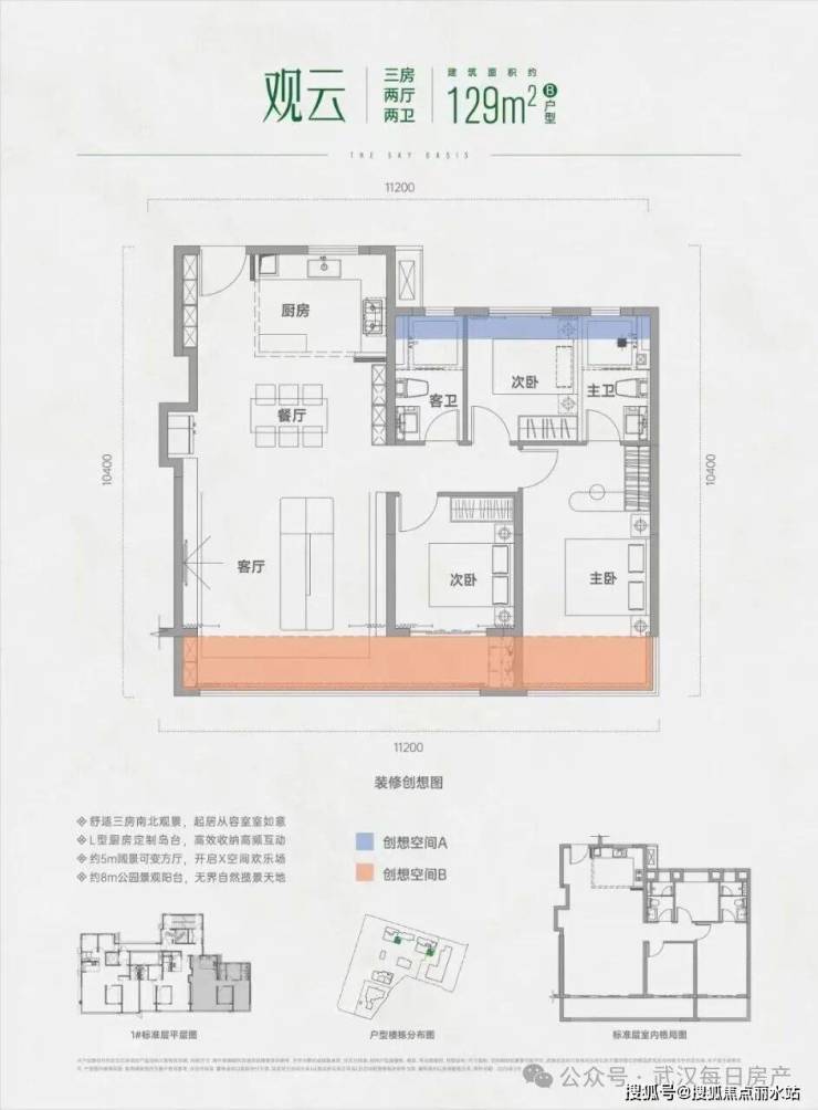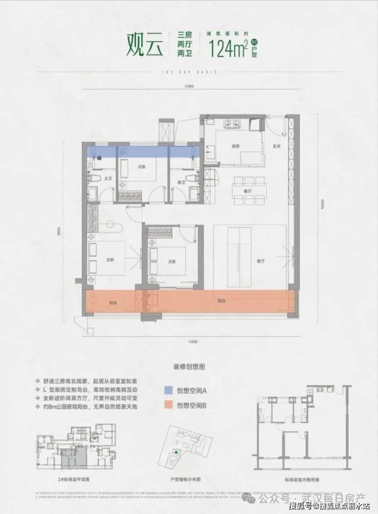 得房率提升至85~97%,百变空间(109m²🉑改大横厅2房,143m²🉑改大横厅3房);增加转角窗设计,拥有270°观景视野,采光效果更佳;主卧阳台优化,卫生间飘窗全优化,实际利用率更高;S 墙设计,冰箱嵌入更美观。