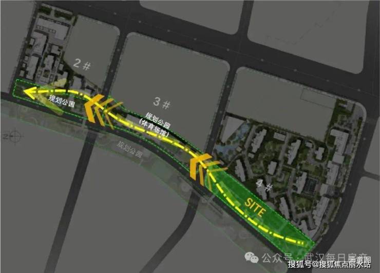 武汉城建万科云泊江岸项目拿地时就包含三个小地块,分别为2号、3-A号、4-A号,住宅主要分布在2号、4号地块内,3号地块则为公园、体育配套。