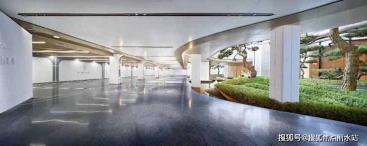 这样的设计,颠覆性的实现了负一层、一层和二层之间的局部空间对视,再加上最高约7米的挑高尺度,更容易让人们失去对传统空间的感知。在这个基础上,水景、绿植以及自然光竟然创造性的覆盖了上述三个立体维度,具象表达了渗透的含义。