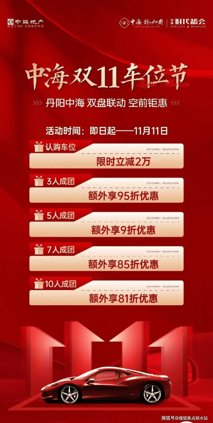 双十一期间,中海臻如府和中海时代都会双盘联动,推出了“双11车位节”,活动期间认购车位立减2万,并且多人成团还有额外优惠!