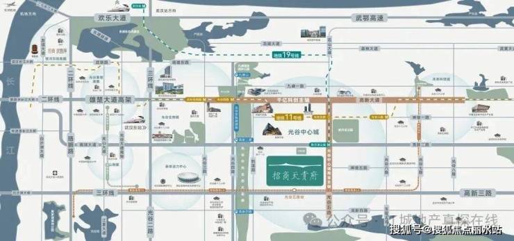 从招商天青府出发,步行约500米就可到地铁19号线新月溪公园站B出口。光谷中心城多数在售项目都远离已有地铁站。