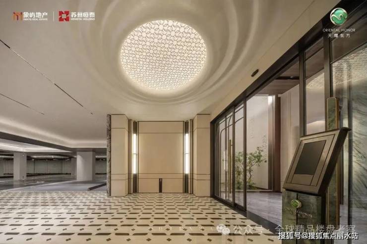 对景墙结合LOGO超级符号,甄选潘多拉星云奢石,天然晶体在光影流转间,折射出银河秘境般的璀璨光芒,营造旭日东升意象。