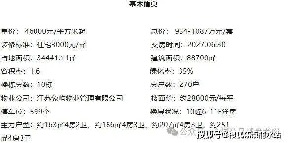 由象屿&恒泰联袂打造的纯洋房住区,坐落于苏州工业园区核心区位(星湖街西/创苑路/南八达街东),以1.6低容积率与≥35%绿地率营造静谧居住环境。项目规划10栋6-11层纯粹洋房,精装交付四大迭代户型(建面约162/186/207/253㎡),由象屿物业提供品质服务。