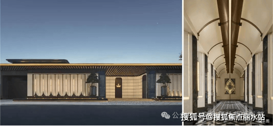 •立面采用斯卡帕叠级美学与海派艺术风格,入口大门以贝金米黄石材与亚马逊绿奢石打造,下沉庭院通铺同款奢石,强化艺术调性