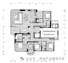 •199㎡方厅面宽达21.9米,253㎡户型270°环幕视野,全系户型可改造为五房,配置3~4个“空中花园”及室内景观中轴