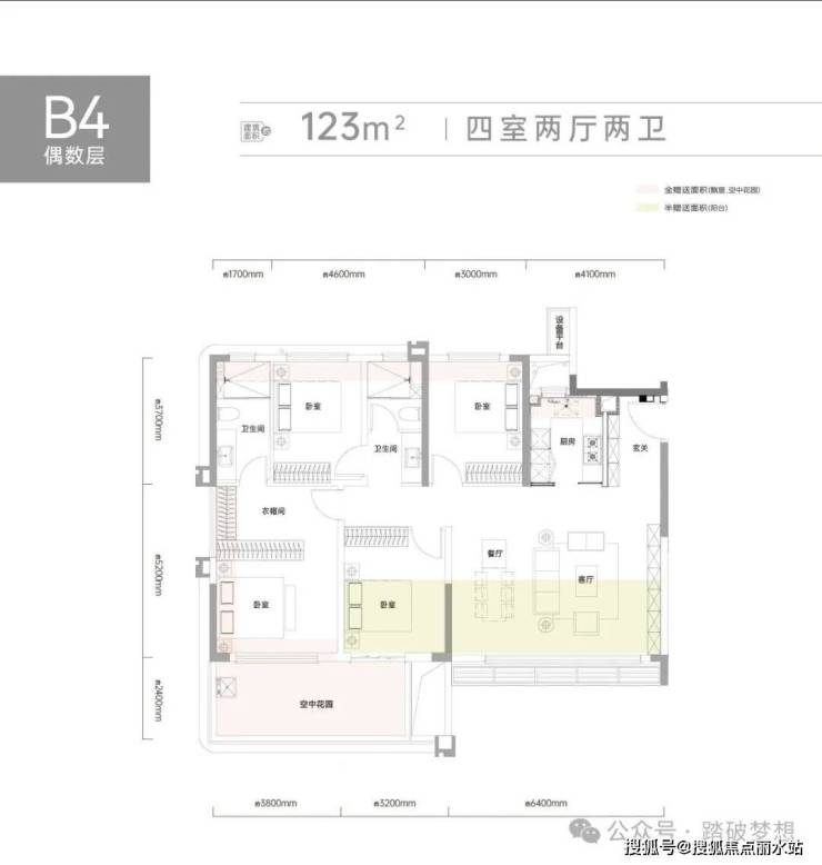 如果说这个107平的三房是送给年轻人的彩蛋户型,那么此次5号楼推出的123平四房户型则完全能够满足改善家庭的需求。