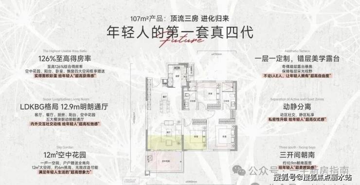 如今,107平的三房户型再次出现在C2揽境地块之上,只不过这一次这个户型产品焕新升级成为带有空中花园、综合得房率126%的真四代户型!