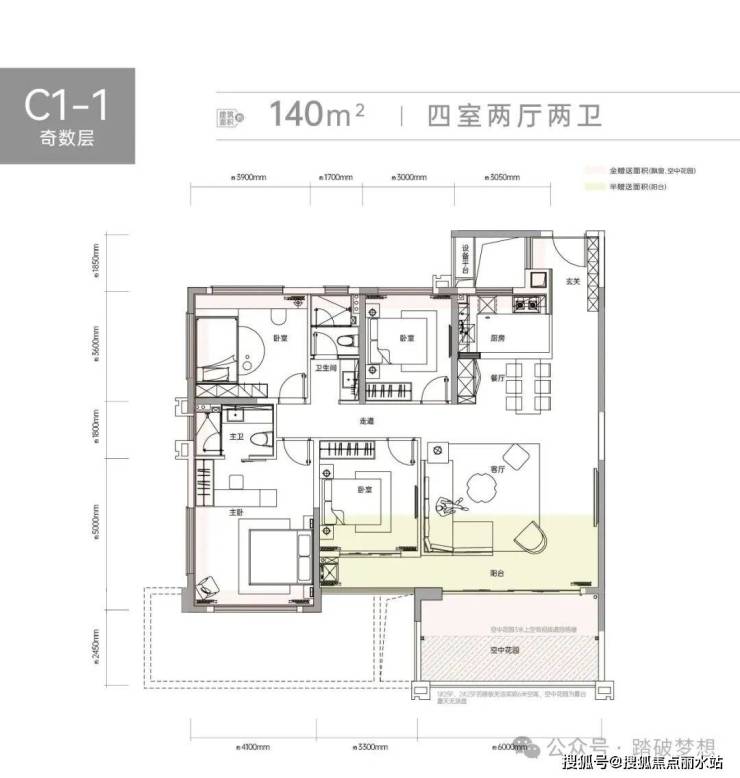 除了这些客厅、卧室的空间更为阔绰之外,最关键是,它还有空中花园!
