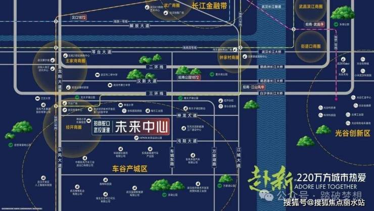 目前项目主推的樾府位于整个项目的核心位置,而此次报规的地块位于整个招商武汉城建未来中心的西北角,可以说,这是整个项目位置最好的地块,距离东风大道最近。