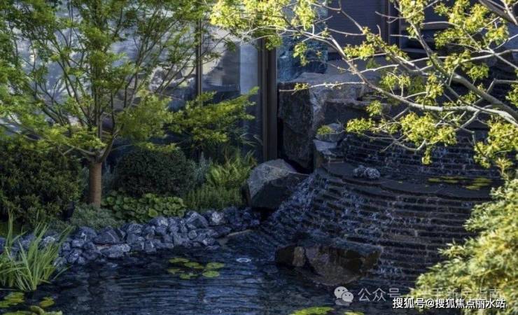 大门前场,水景之上高3.5米、蓬径5米的罗汉松作为点景之笔,映衬出极具中式美学的归家仪式感,仅此一株,就价值50万,尊崇感拉满。