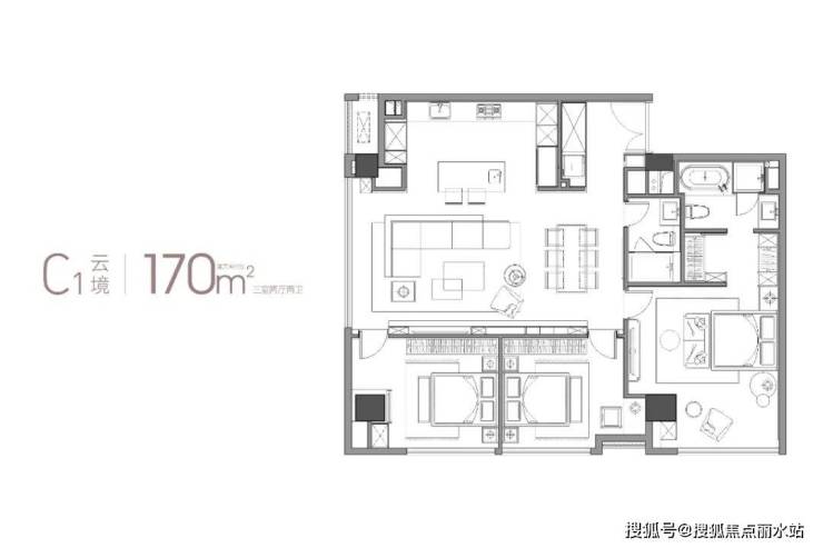168平较大户型则适合企业或客户在附近,可以置办一套商务会客厅,接待生意伙伴,也十分有面子。