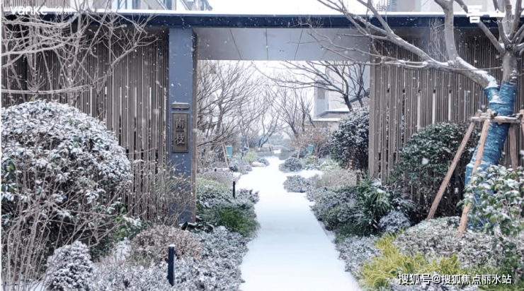 长青的灌木绿植,上面已经覆盖了皑皑白雪,小区内的道路已经变成了洁白的白毯,一尘不染,自成画卷。